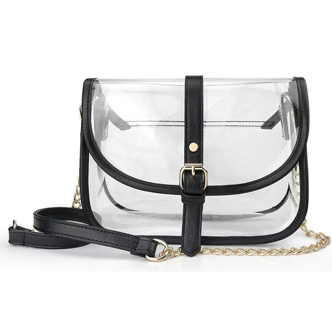 กระเป๋าสะพายไหล่ของผู้หญิง PVC แบบใสกระเป๋าถือกันน้ำได้สำหรับการเดินทางกระเป๋าสะพายคาดลำตัวโปร่งใสแฟชั่นออกแบบได้ตามต้องการ